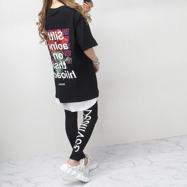 ローズ柄ロゴがインパクト抜群のオシャレでカッコいいBIGTシャツ♪