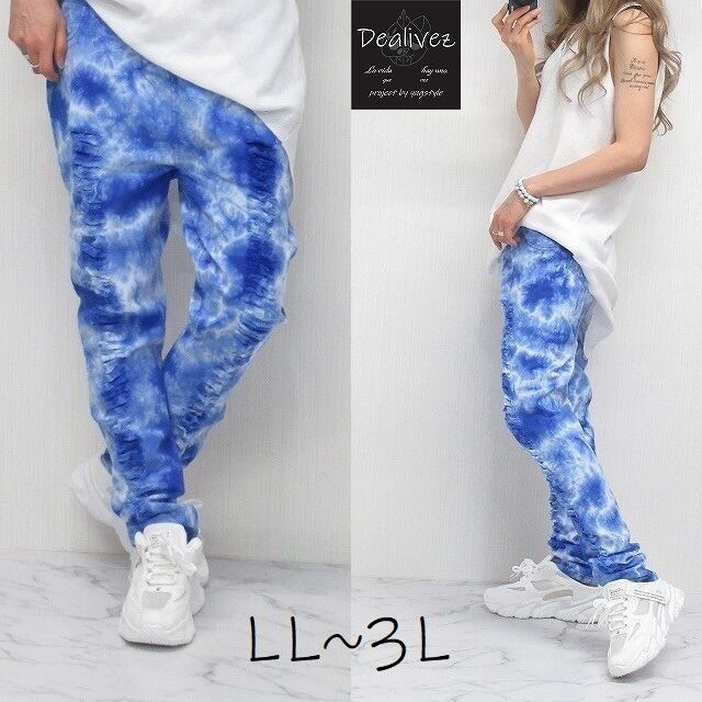 【Dealivez】【2size】ハードダメージ ver. 邨染め タイダイ 美脚脚長 スーパーストレッチ スキニー ブルー
