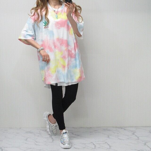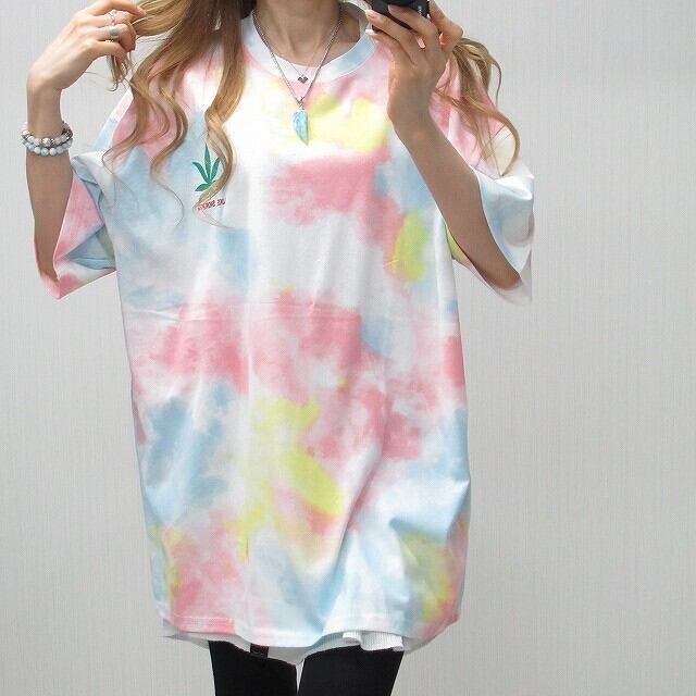 タイダイ ムラ染め バックプリント 綿100% BIGTシャツ ユニセックス ピンクMIX