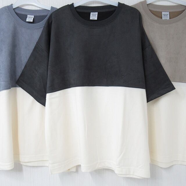バイカラー 配色切替 スウェード ポンチ オーバーTシャツ ベージュ