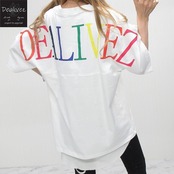 【2color】【Dealivez】レインボー 虹色 バックロゴ 切替 Tシャツ