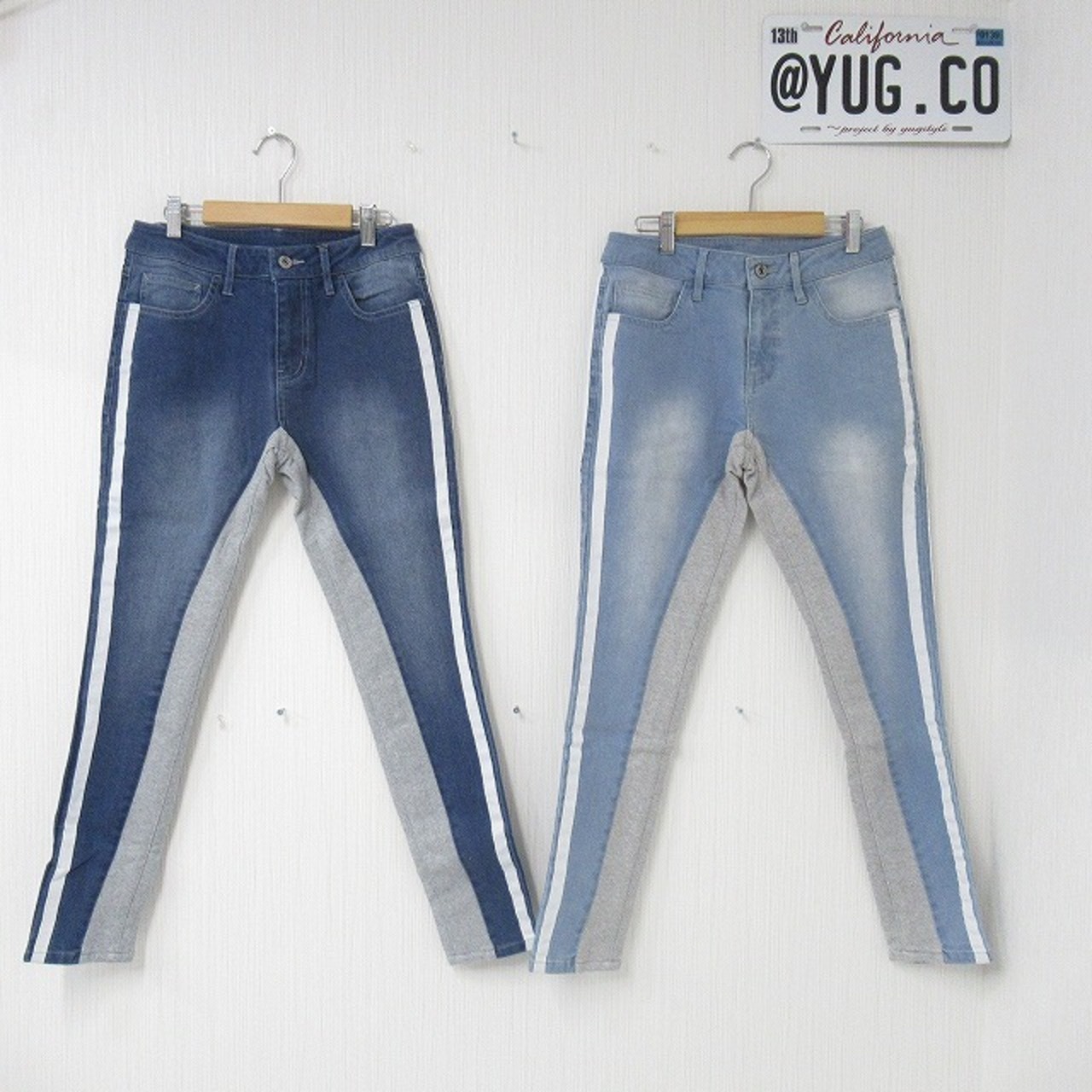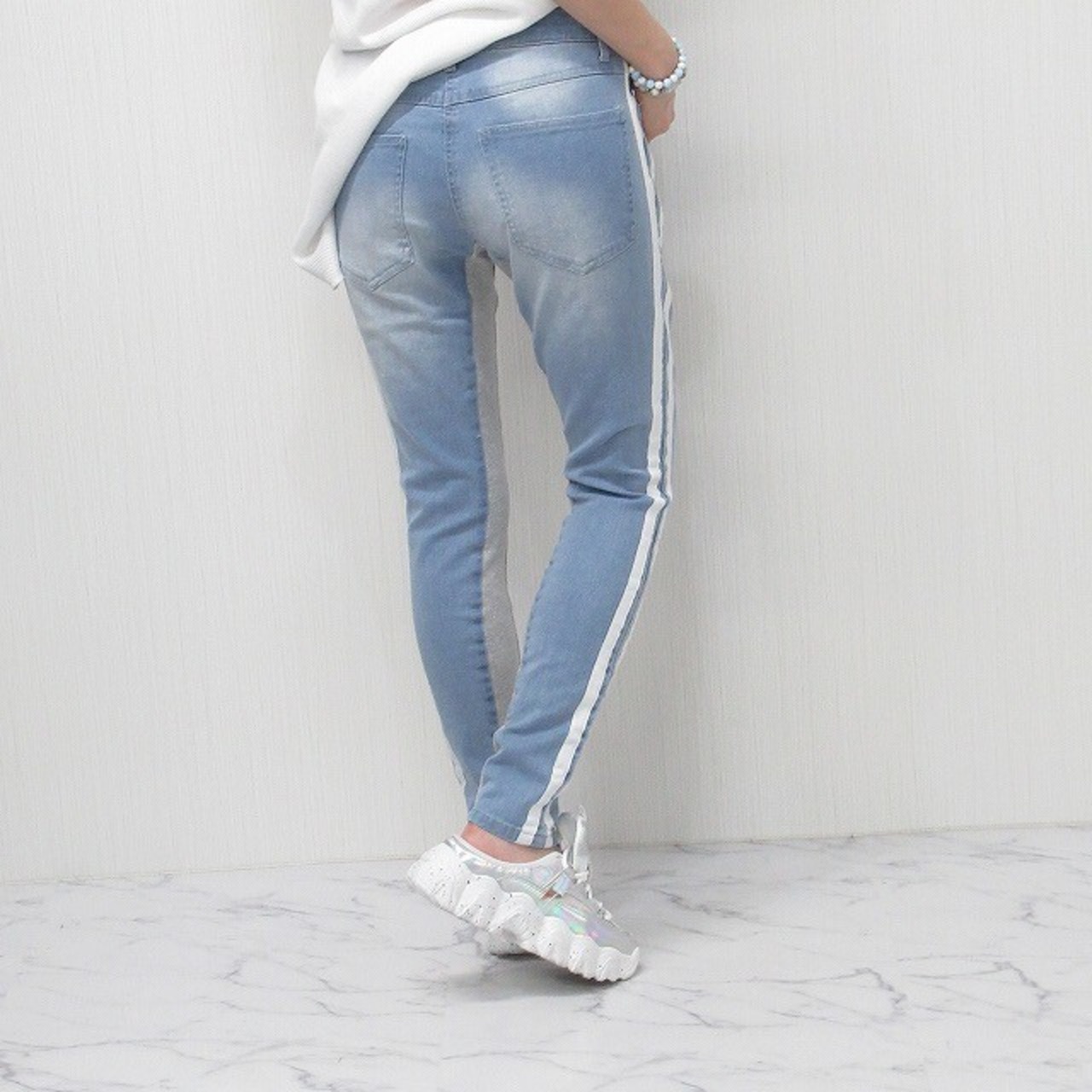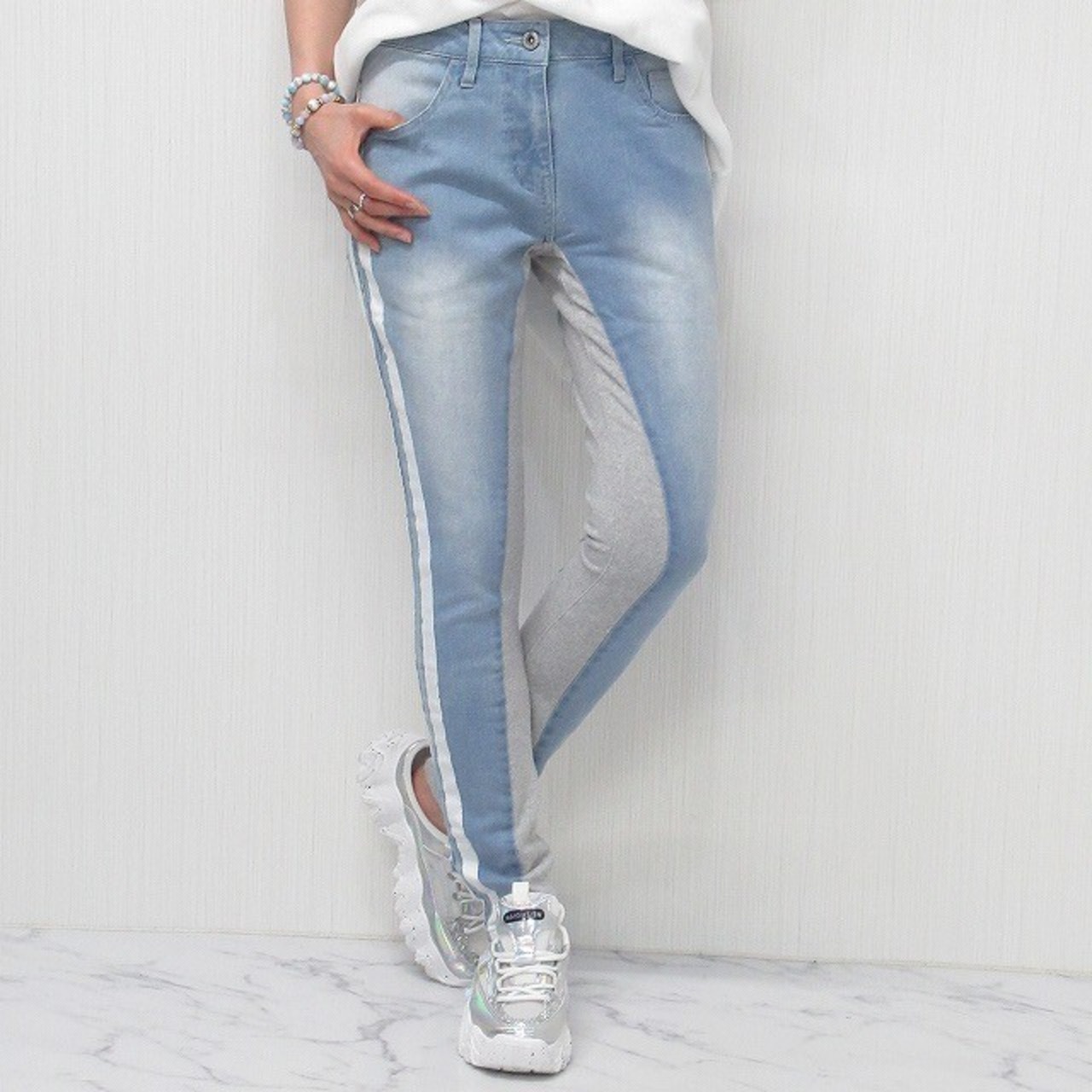 【2 size】デニム 切替スウェット カットデニム ジョガーパンツ Sideライン サックス