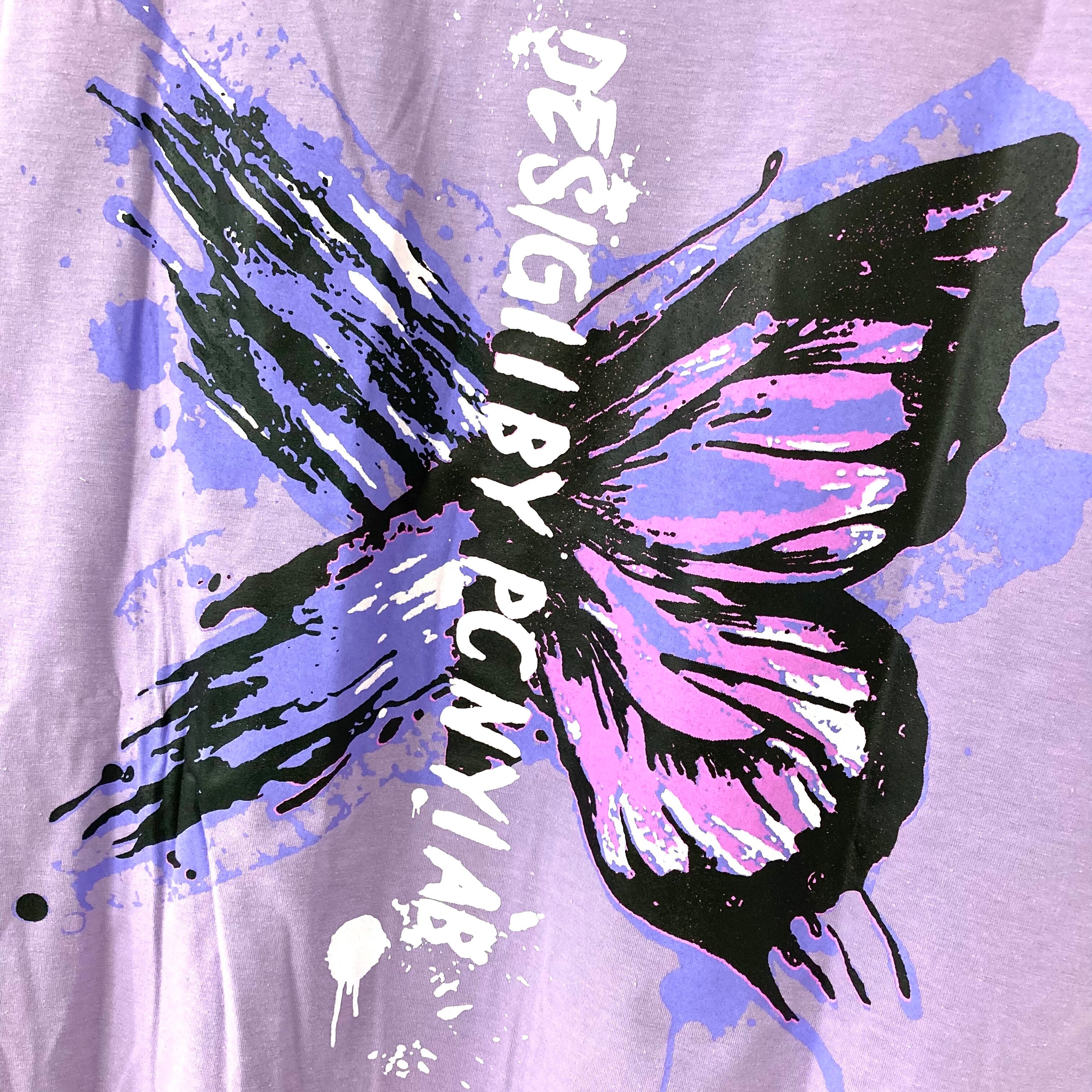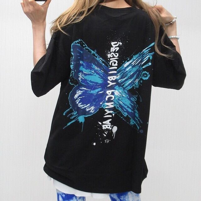 バタフライ 蝶々 バックロゴ ストリート BIGTシャツ ユニセックス ブラック