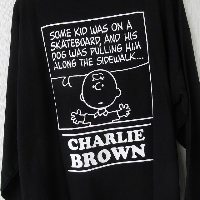 スヌーピー チャーリー バックプリント 胸ロゴ Sideスリット ロンT ブラック