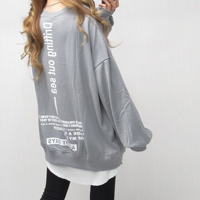 バックロゴ オーバーシルエット BIGトレーナー ブルーグレー