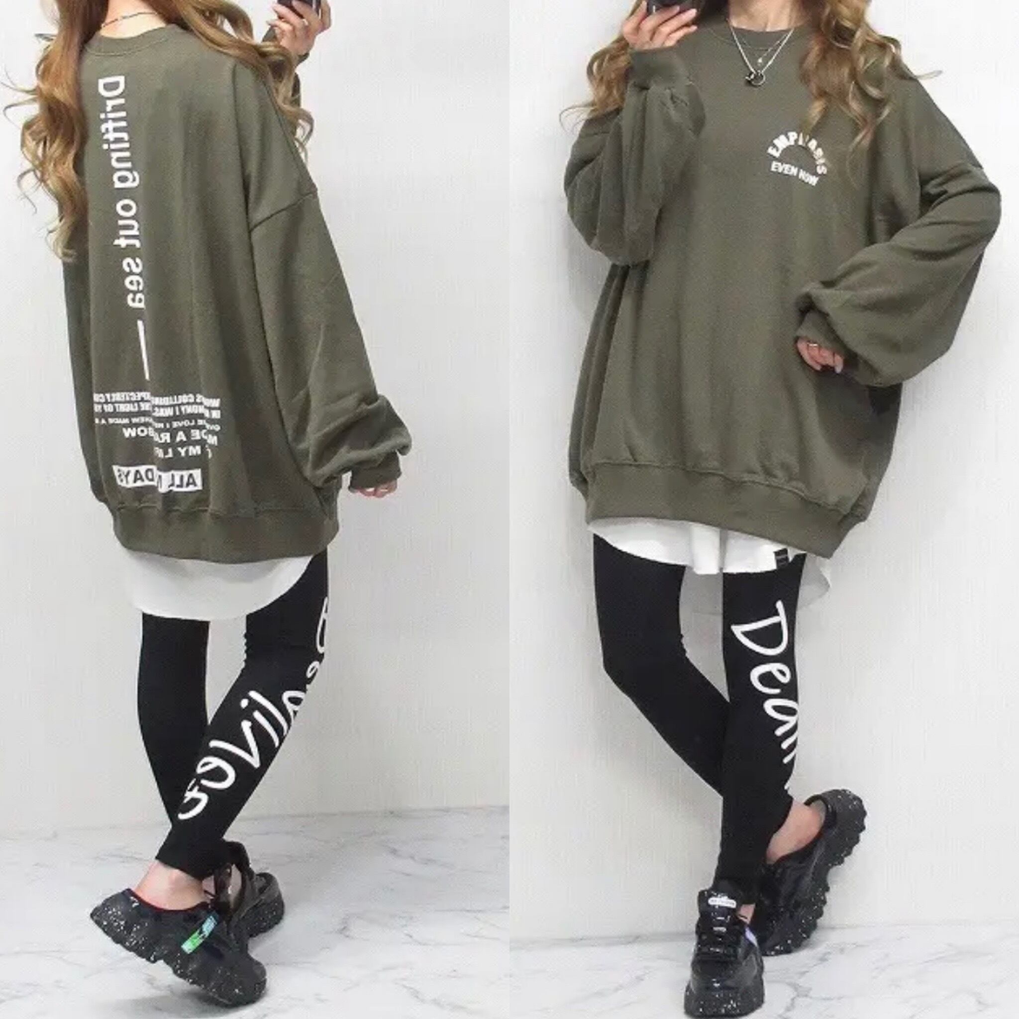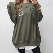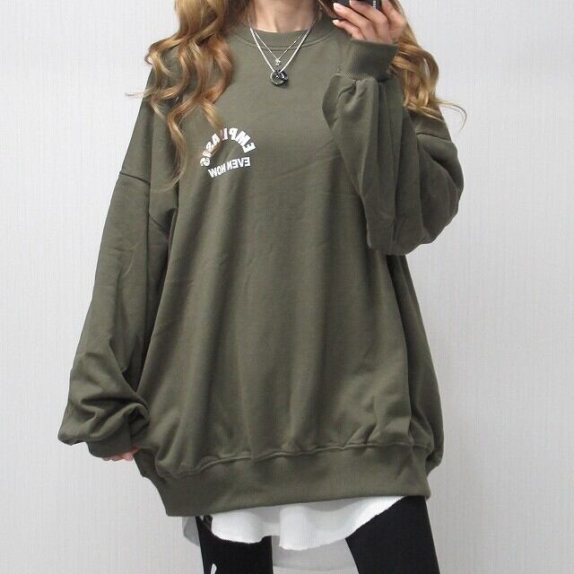 バックロゴ オーバーシルエット BIGトレーナー カーキ