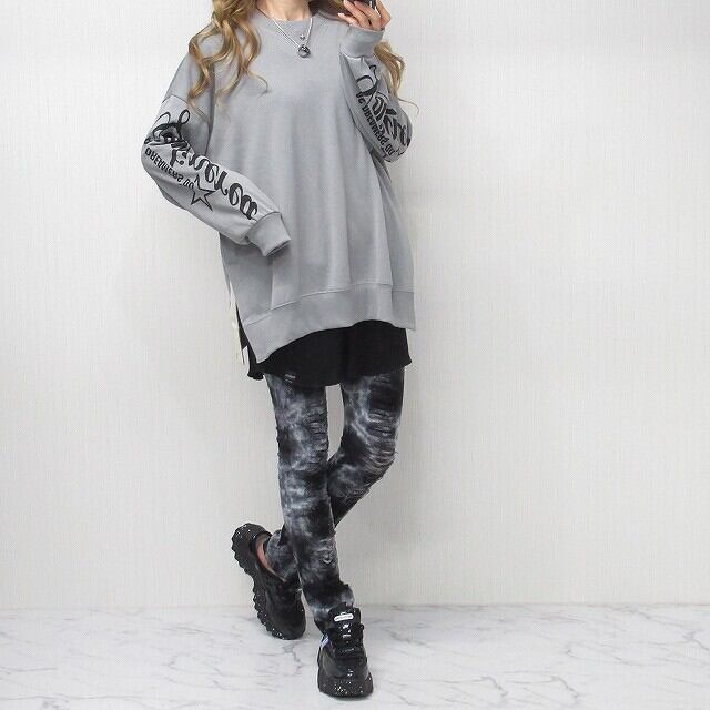 袖ロゴ Sideスリット オーバーシルエット BIGトレーナー グレー