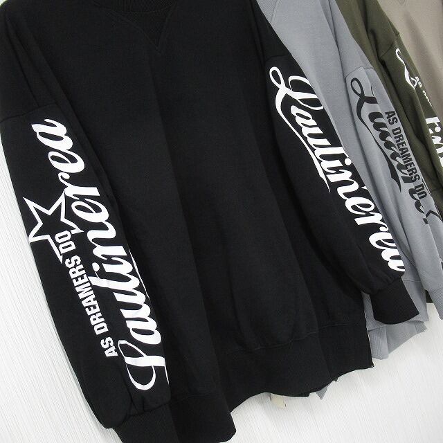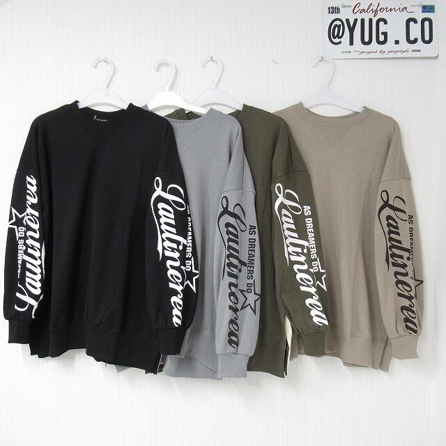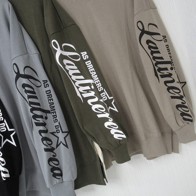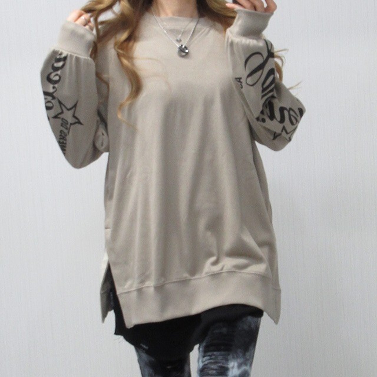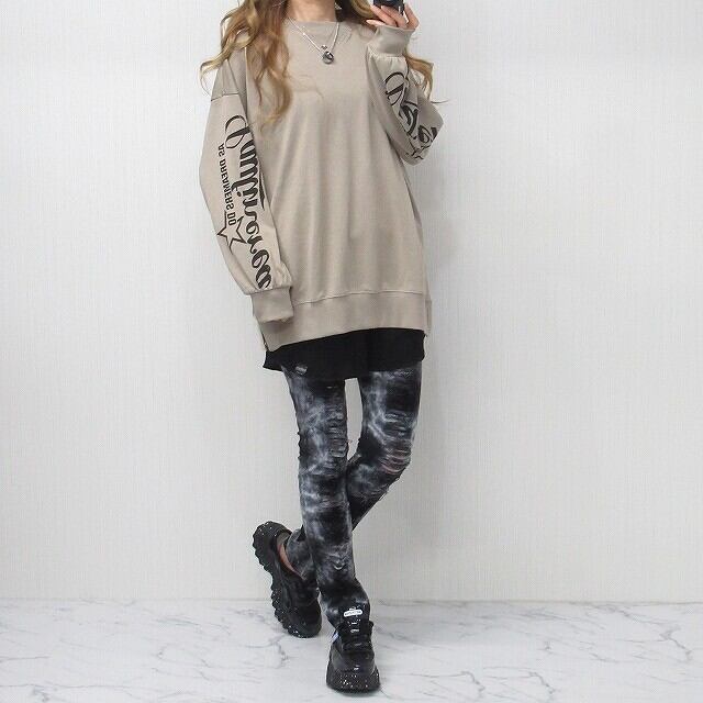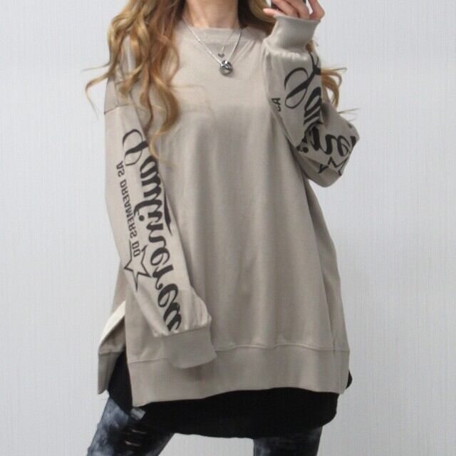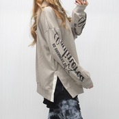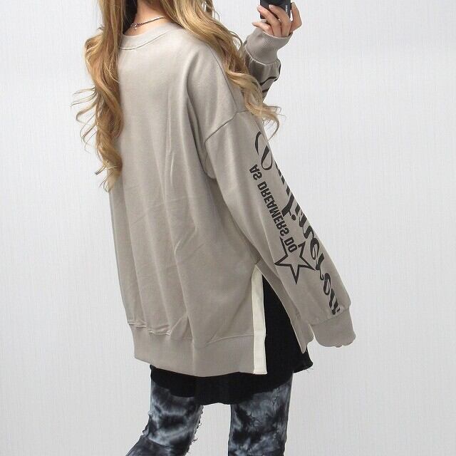 袖ロゴ Sideスリット オーバーシルエット BIGトレーナー ベージュ
