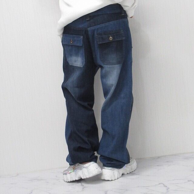 配色切替のパッチワーク風デザインがオシャレなデニムパンツ!
