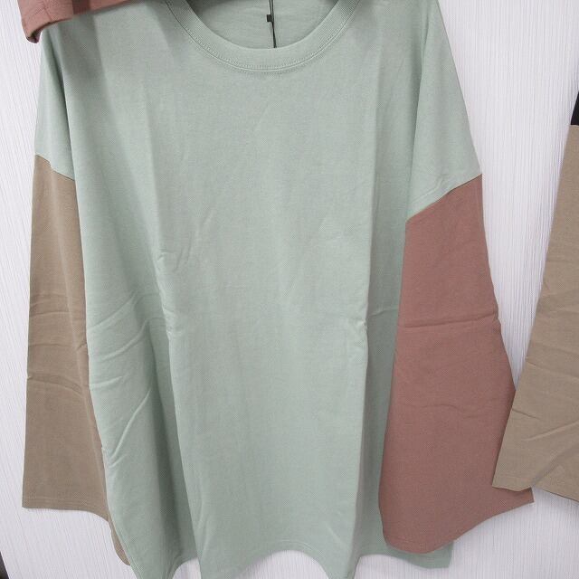 袖 配色切替 カラフル カジュアル ロンT オーバーシルエット カーキ