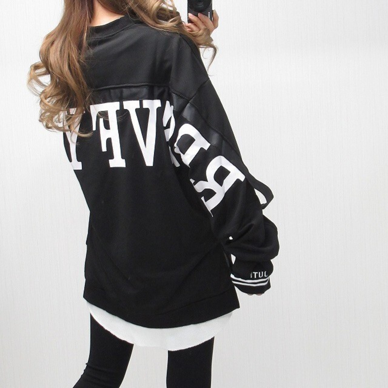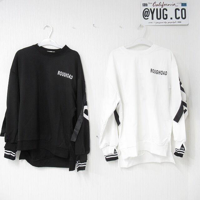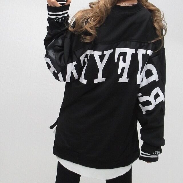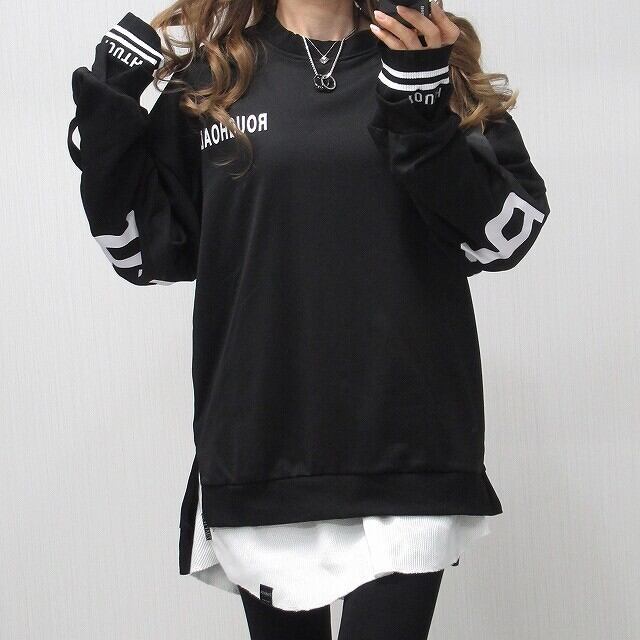 W袖リブロゴ 切替 レイヤード バックロゴ BIGトレーナー ブラック