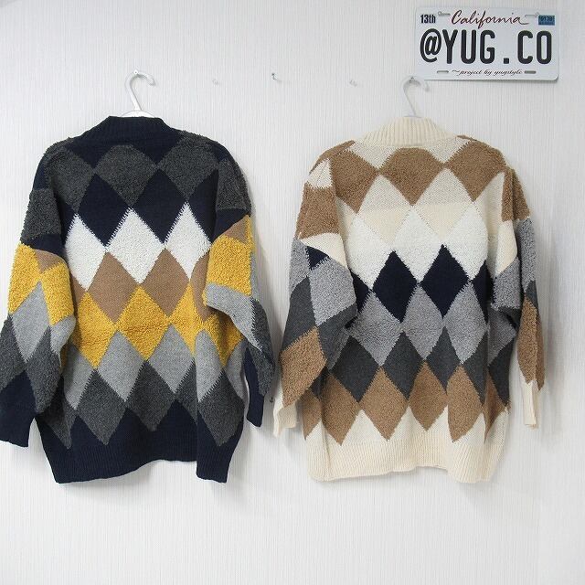 アーガイル柄のざっくりニットカーディガン♪