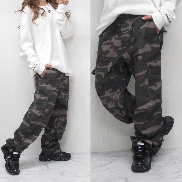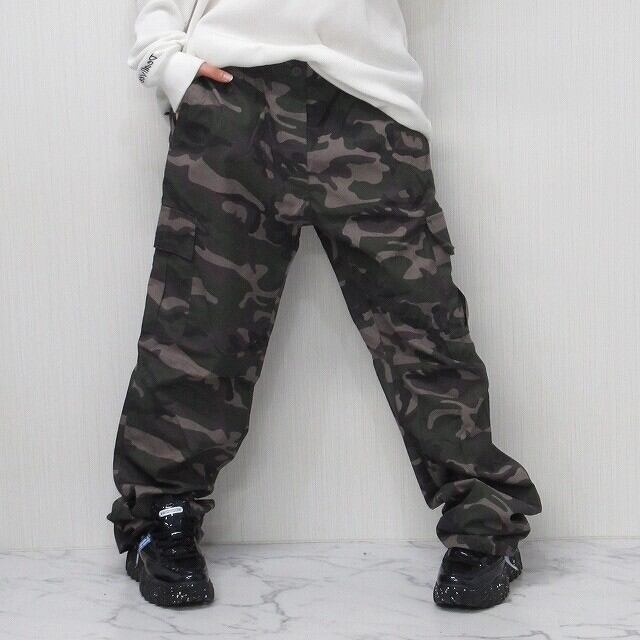 【4size】ミリタリー 迷彩 カモフラ Side立体ポッケ BOYSパンツ カーゴパンツ カーキ