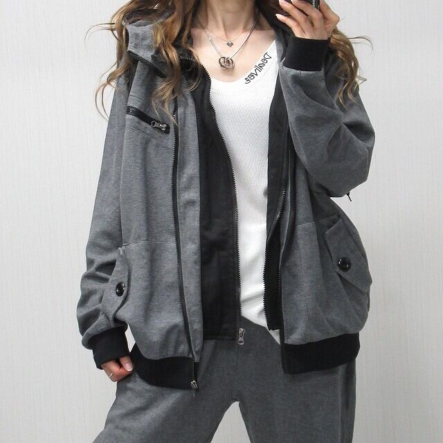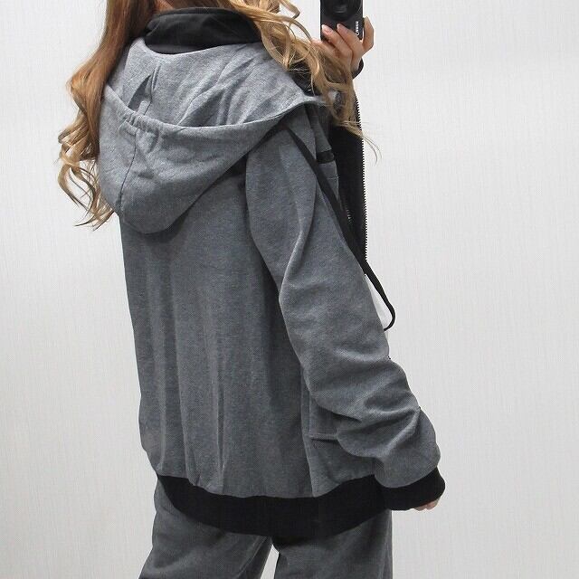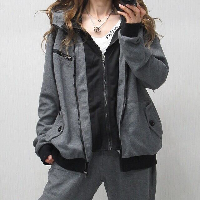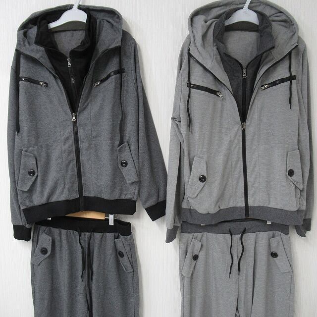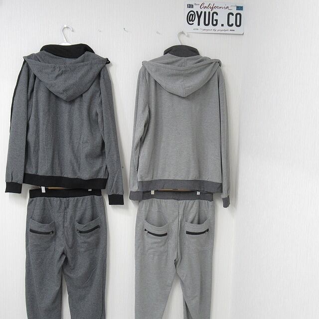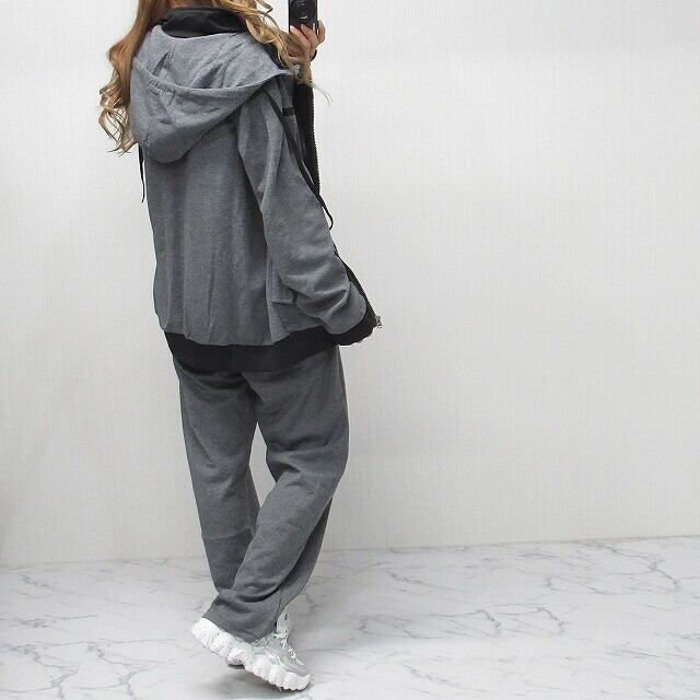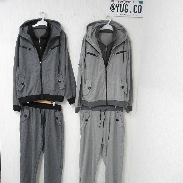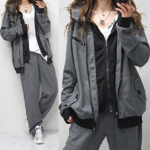 2カラー【SET UP】セレカジ レイヤード W襟 BIGフード パーカー&パンツ 上下セットアップ インポート