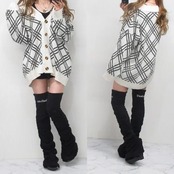 斜めチェック柄ジャガード ざっくりニットカーディガン♪