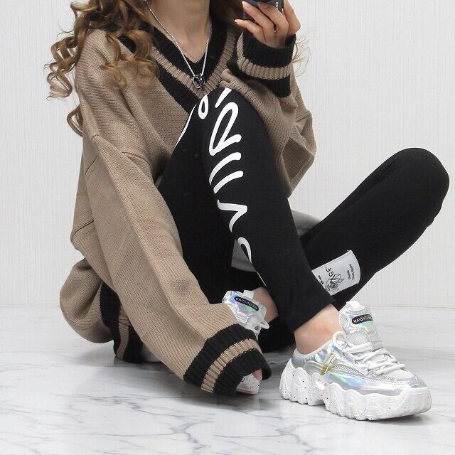 Vネック バイカラー リブライン ニット BIGシルエット ベージュ