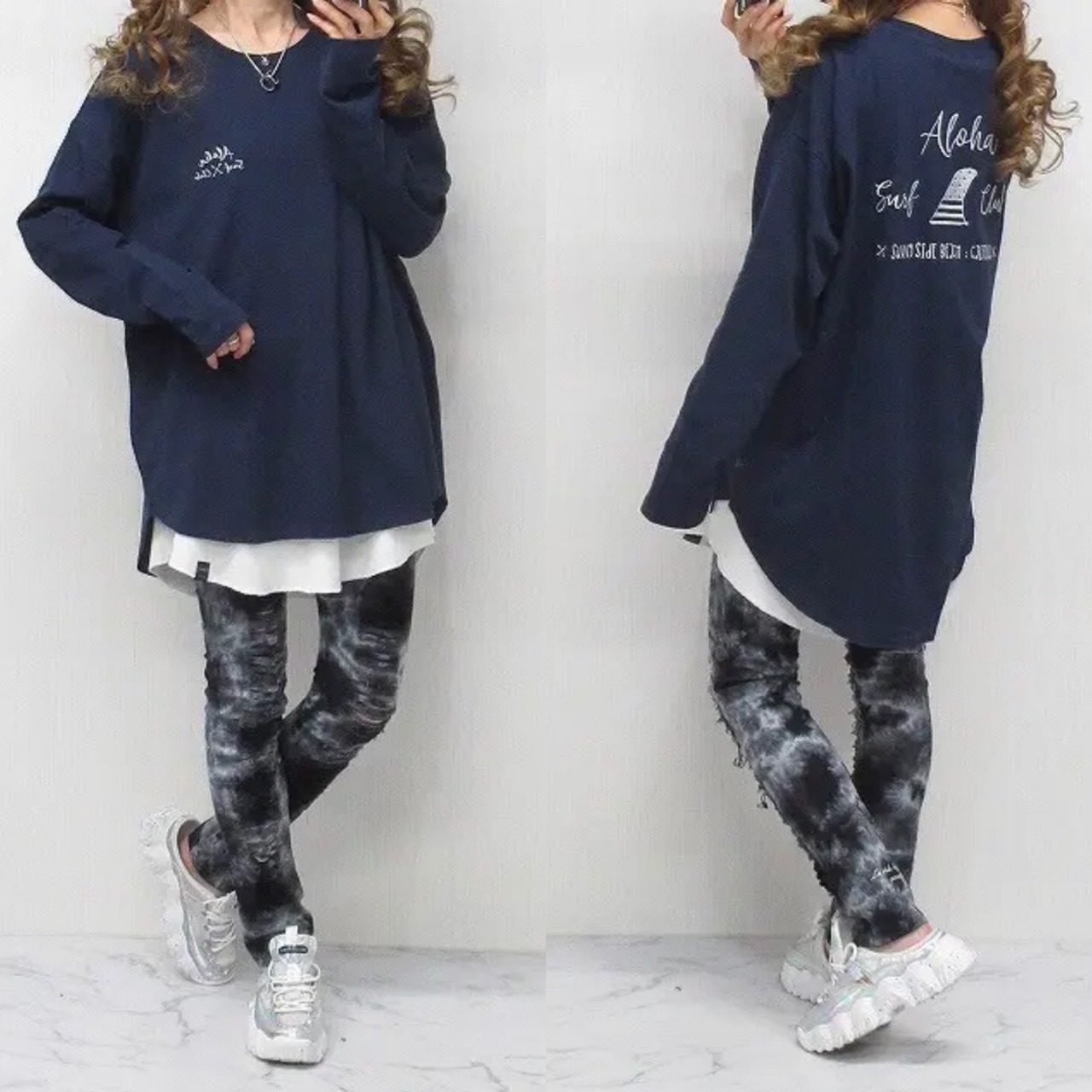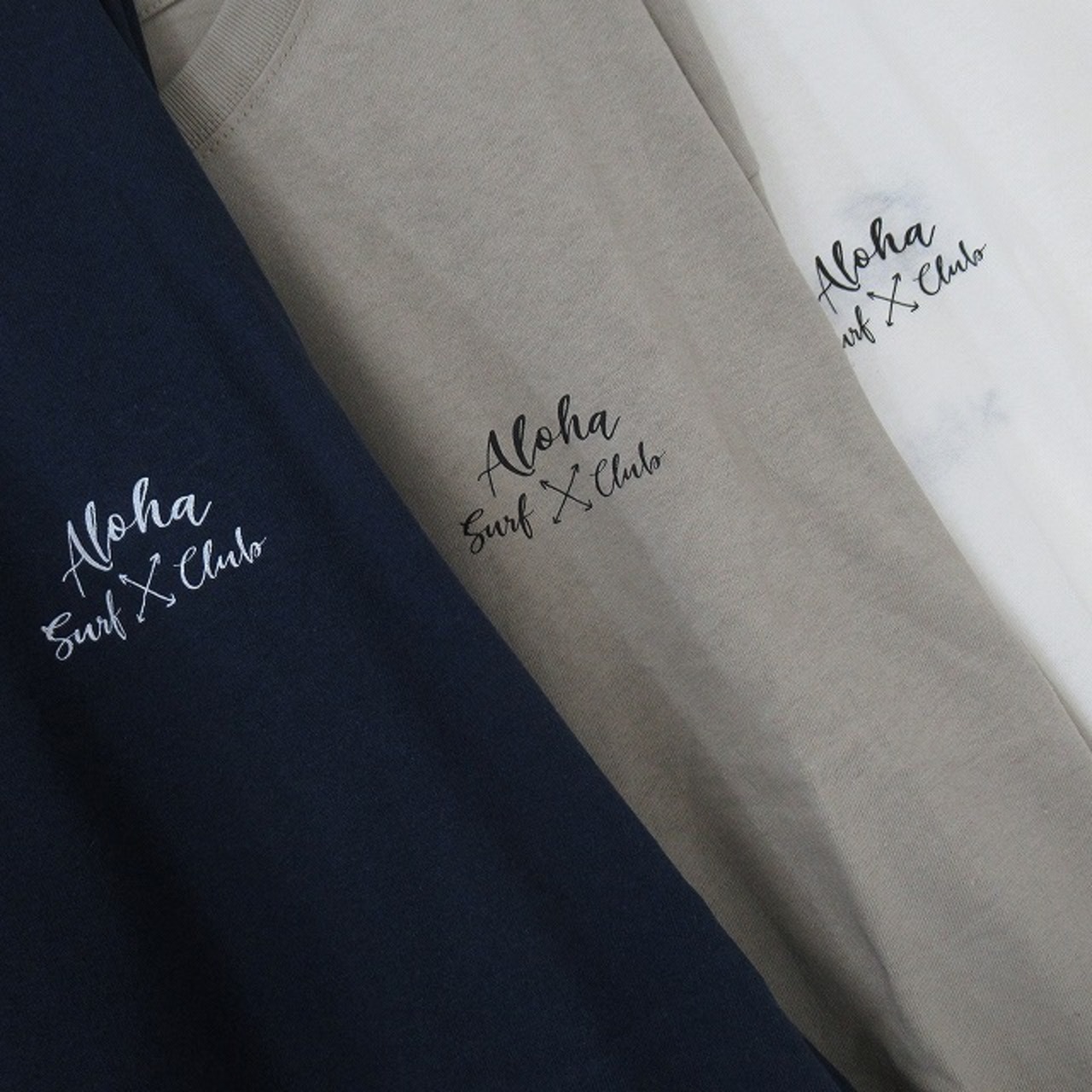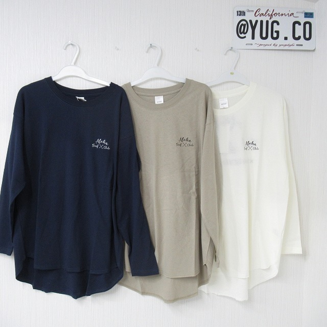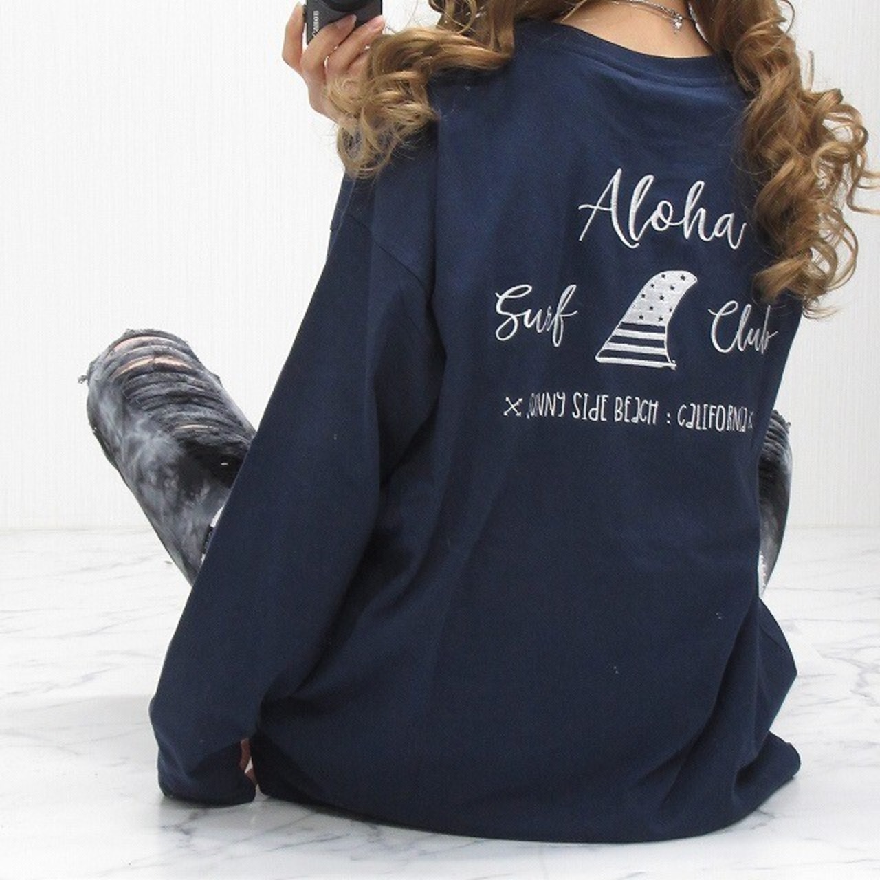 ALOHA ラウンドカット ロング丈 背中ALL刺繍 アメカジ surf ロンT ネイビー