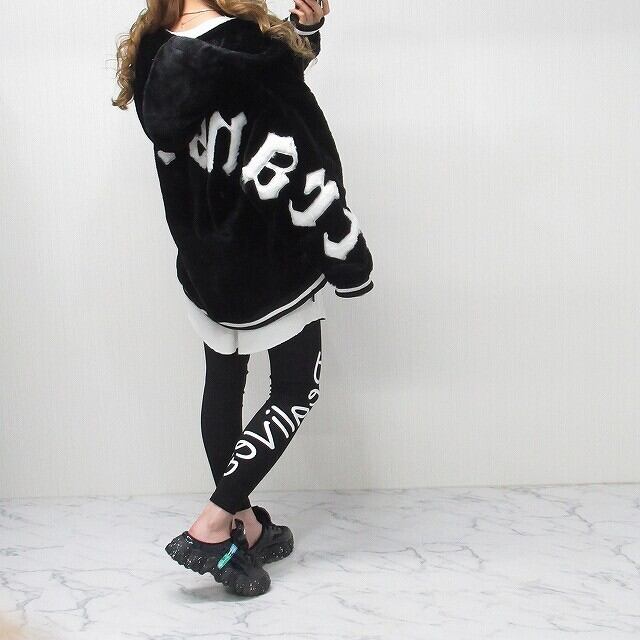 BACKロゴ 極上 光沢 ファージャケット オーバーサイズ 男女OK ブラック