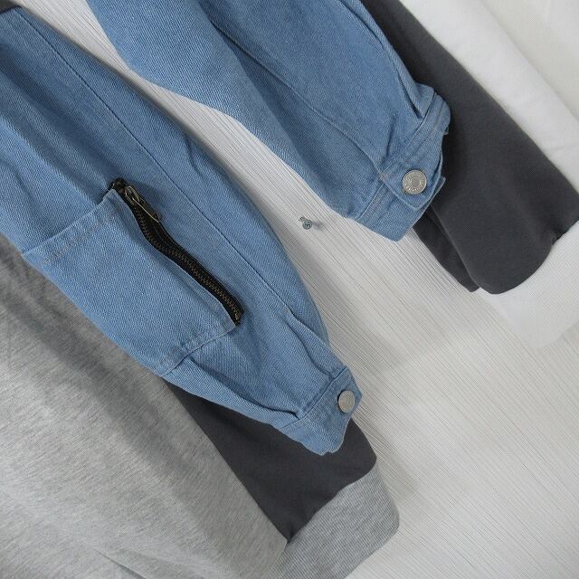 お袖ZIPポケット付き♪ デニム切替パッチワーク風配色切替パーカー♪♪