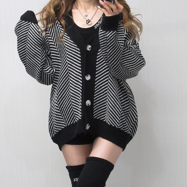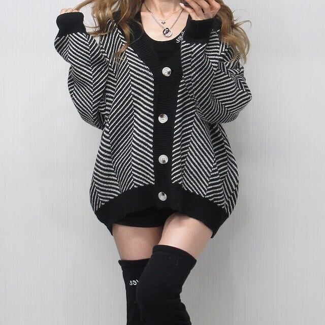 斜め配色切替がオシャレなジャガード ざっくりニットカーディガン♪