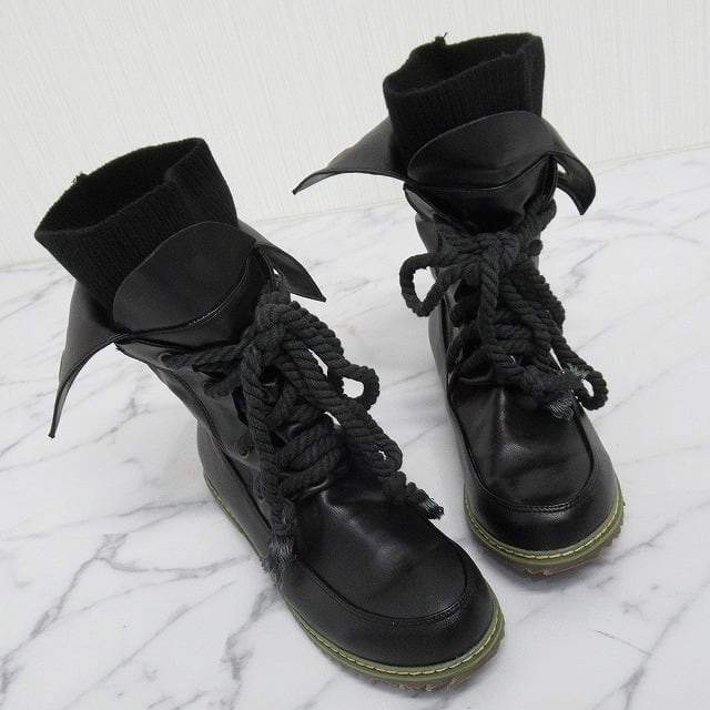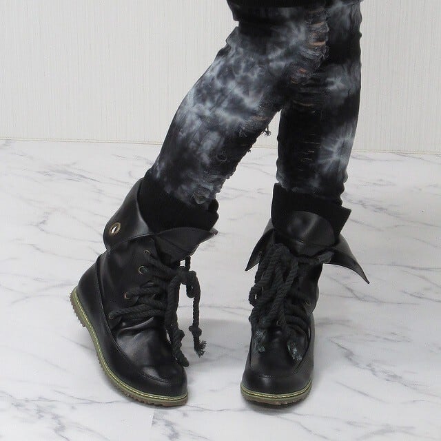 リブ切替 レイヤード ブーツ ブラック
