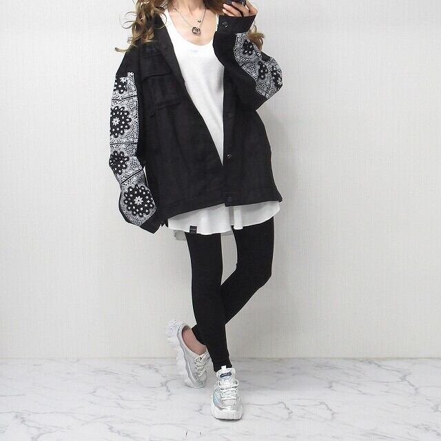 袖ペイズリー柄 デニムジャケット Gジャン オーバーサイズ
