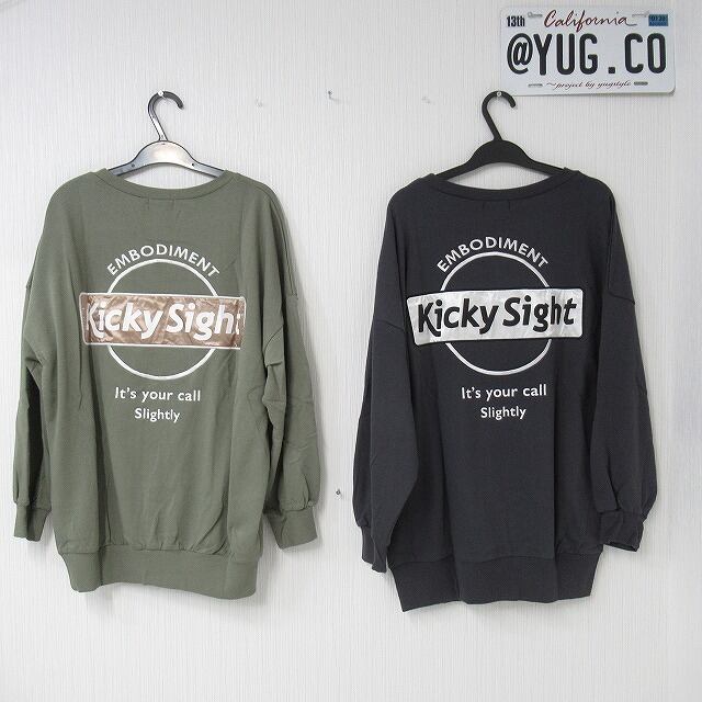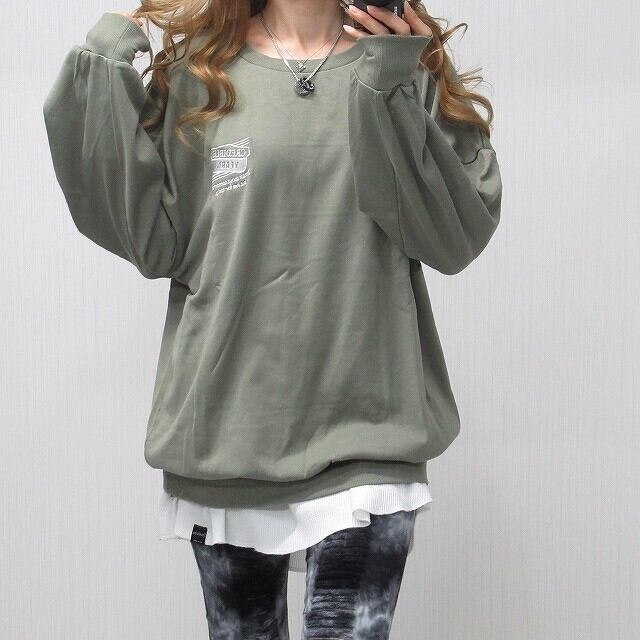バック刺繍 トレーナー オーバーサイズ カーキ