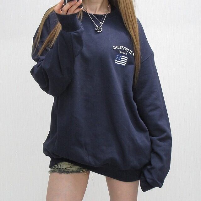 アメカジ California バックロゴ USA 星条旗 トレーナー オーバーサイズ ネイビー