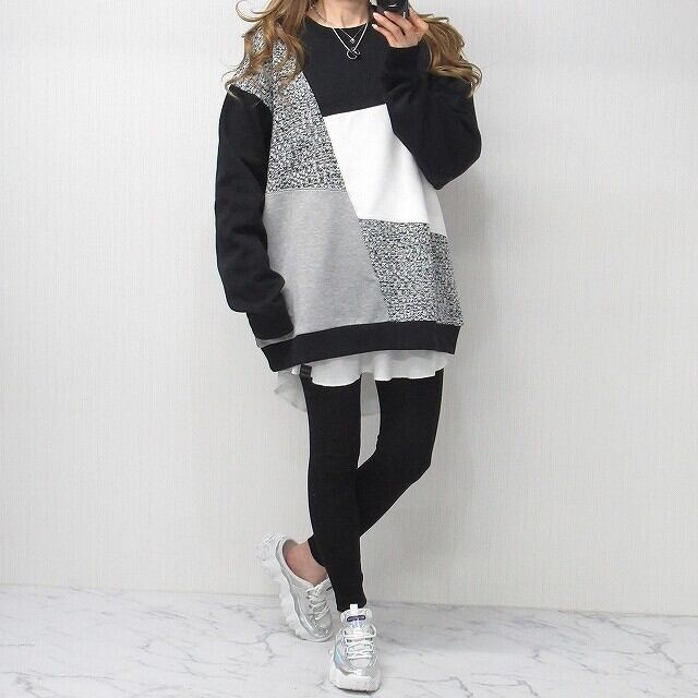 トレーナー地×MIXニット&ニットの異素材MIXのパッチワーク 配色切明デザインがオシャレ感抜群!!