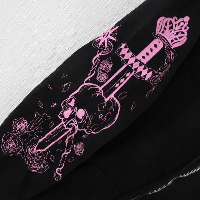 袖 スカル タトゥ 裏起毛 ZIPパーカー Frontポケット ユニセックス