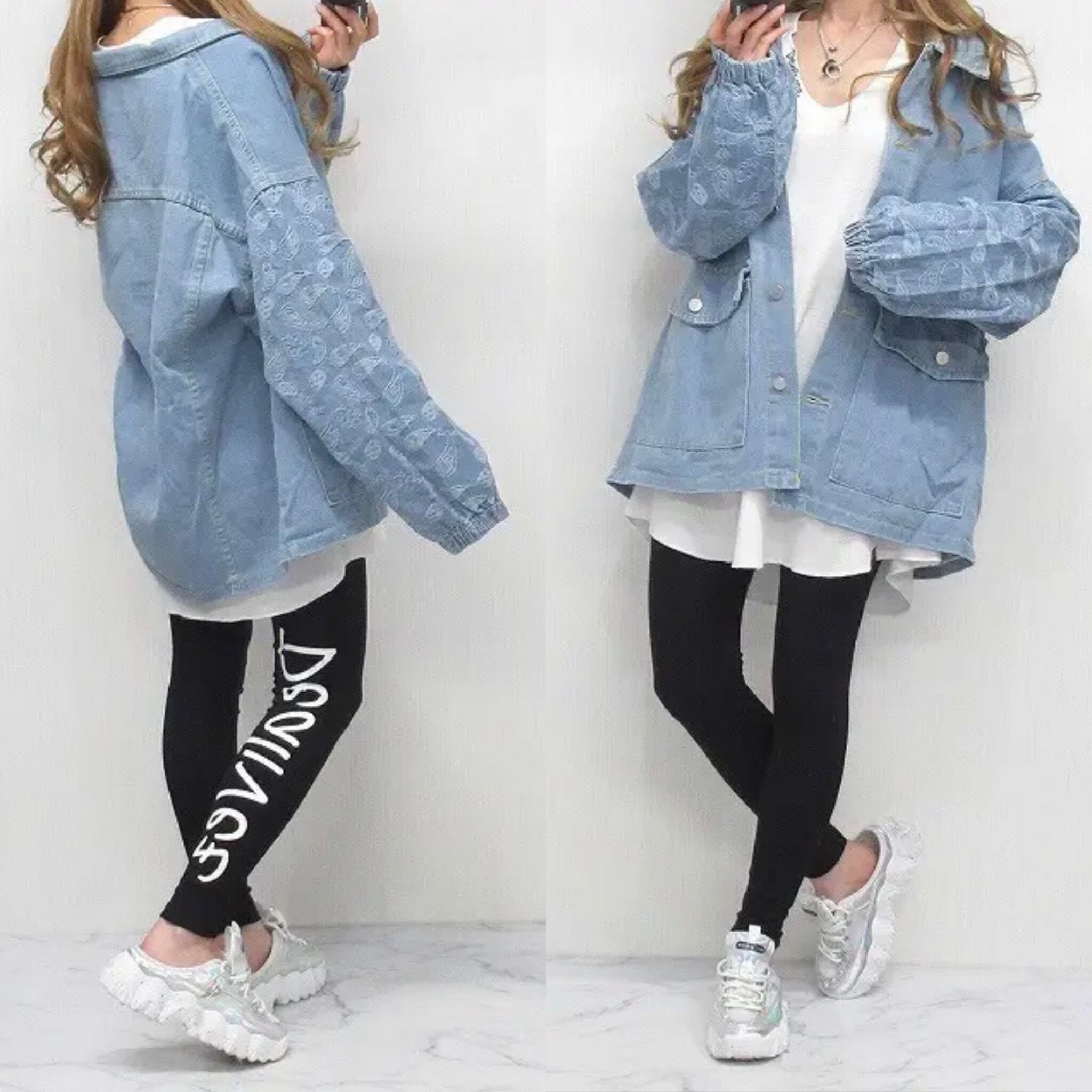 袖 ペイズリー柄 エンボス刺繍 デニムジャケット Gジャン オーバーサイズ ブルー