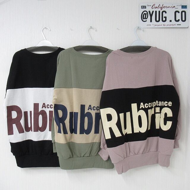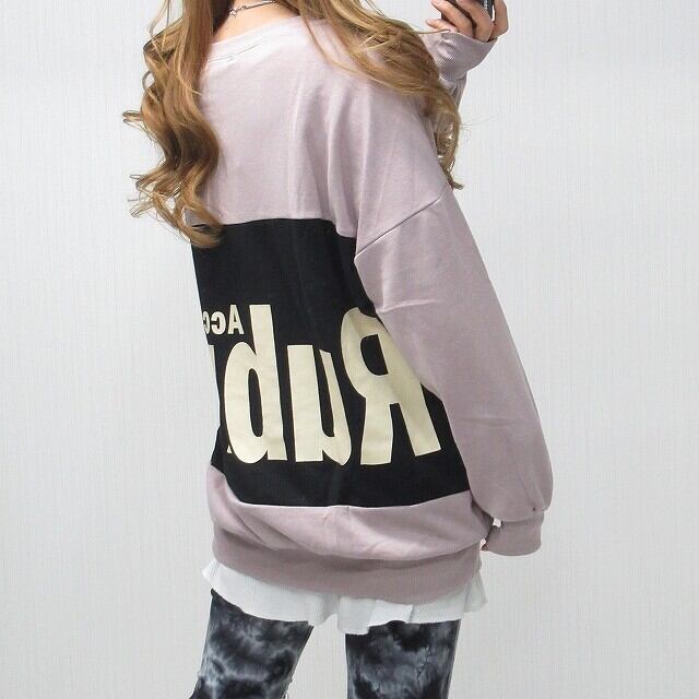 胸刺繍 バックロゴ 配色切替 トレーナー プルオーバー オーバーサイズ ピンク