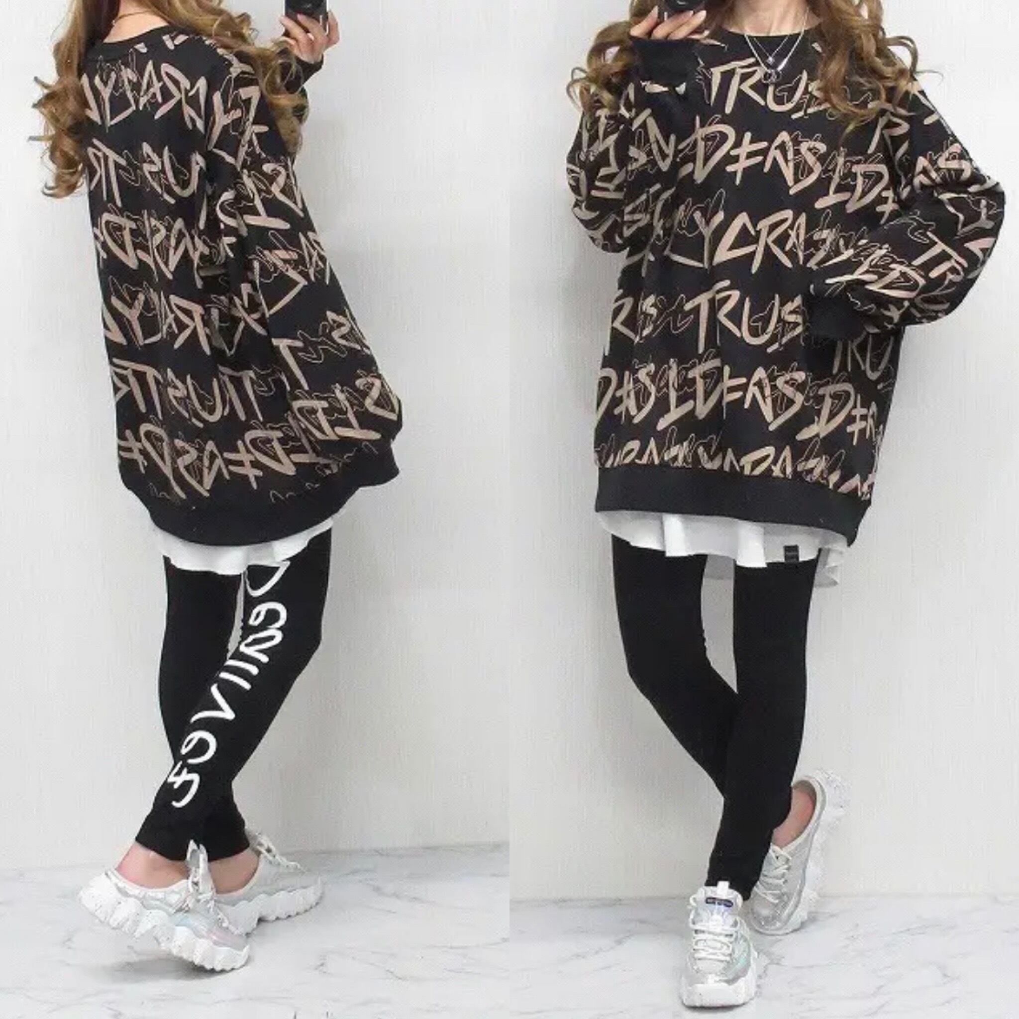 ロゴ総柄 Wロゴ トレーナー オーバーシルエット ブラック