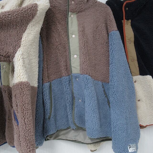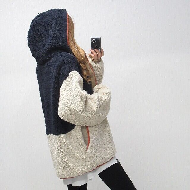 モコモコ もっちり プードルボア 配色切替 異素材MIX BIGフード ジャケット 男女OK