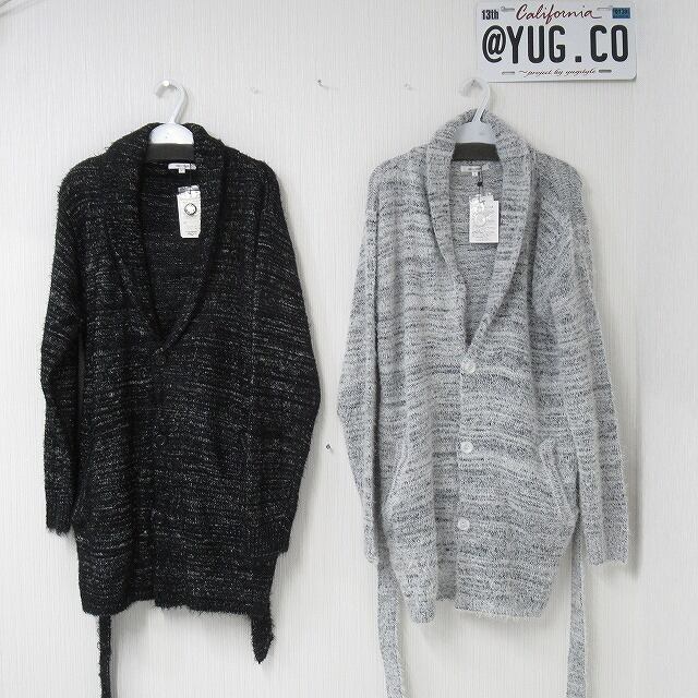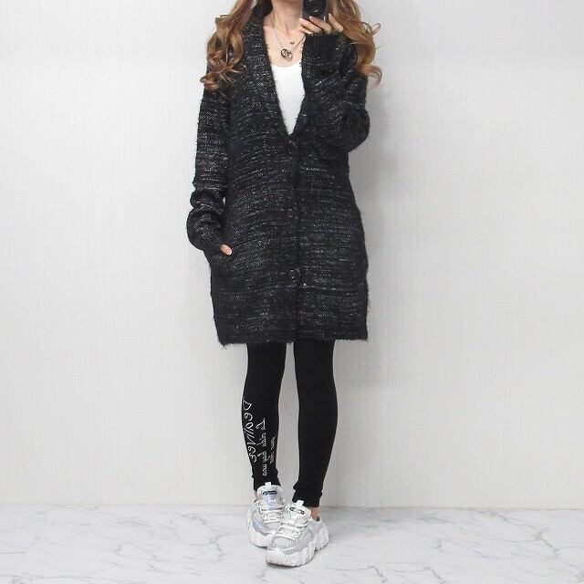ふわふわ シャギーニット あったか カーディガン ベルト付き MIXブラック