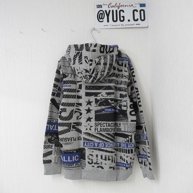 ストリート フォト&ロゴ総柄 ストリートパーカー オーバーサイズ グレー