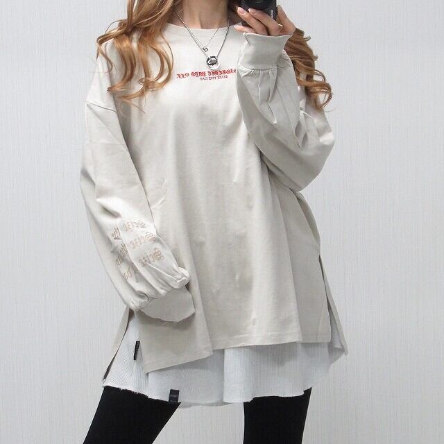 胸刺繍 Backドラゴン 袖ロゴ ロンT オーバーシルエット グレージュ