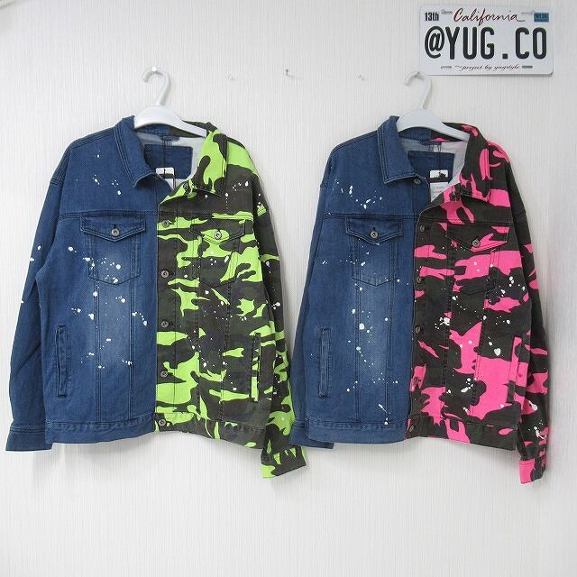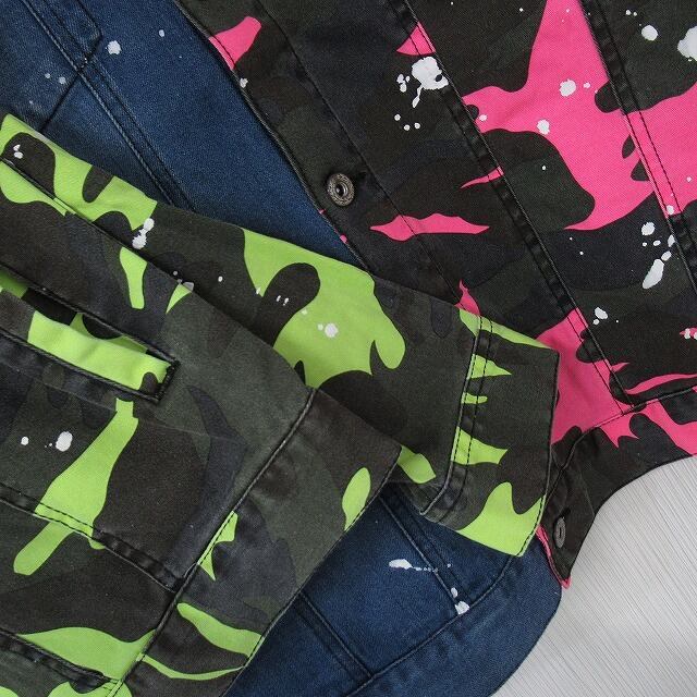 カモフラ迷彩 デニム ドッキング デニムジャケット Gジャン オーバーサイズ ピンク
