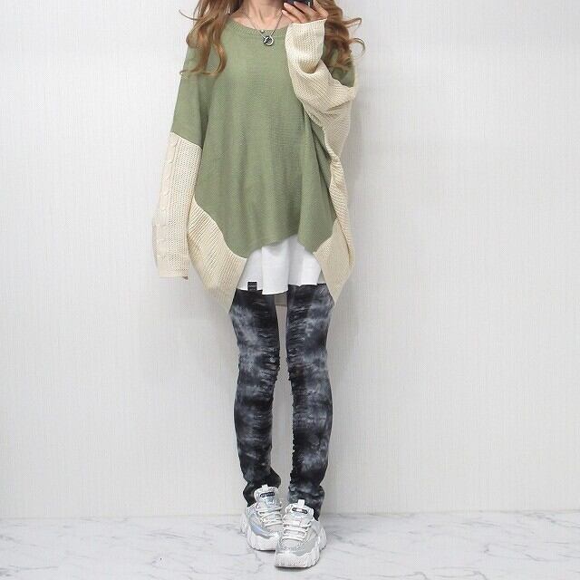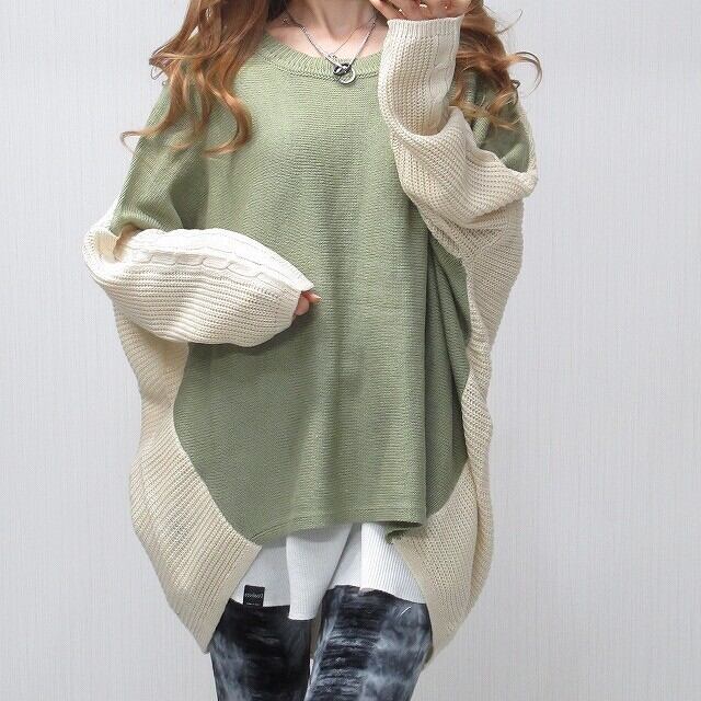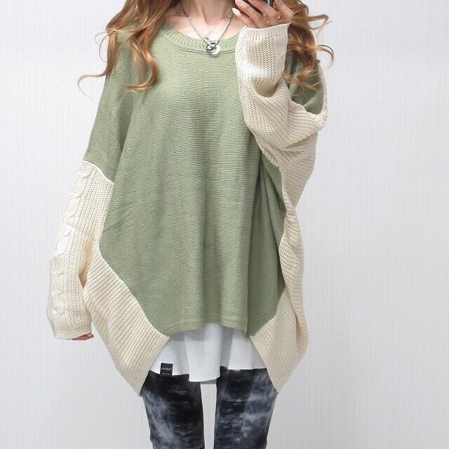 袖ケーブル編み&配色切替がオシャレなニット⭐︎