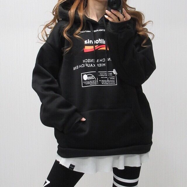 カリフォルニア California ロゴ 裏起毛 パーカー オーバーサイズ ブラック