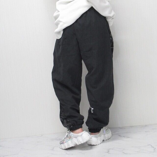 Sideペイズリー柄 裾Inロゴ BOYSカジュアル ワイドパンツ スミクロ