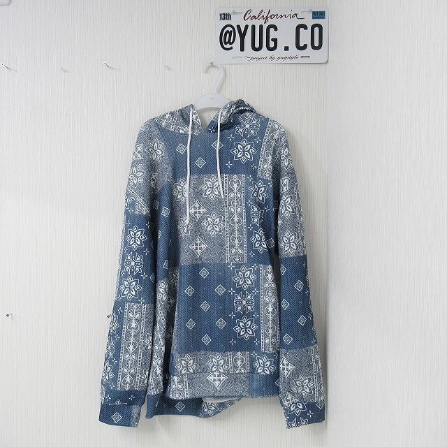 ペイズリー柄 パネル配色切替 ストリート BIGパーカー