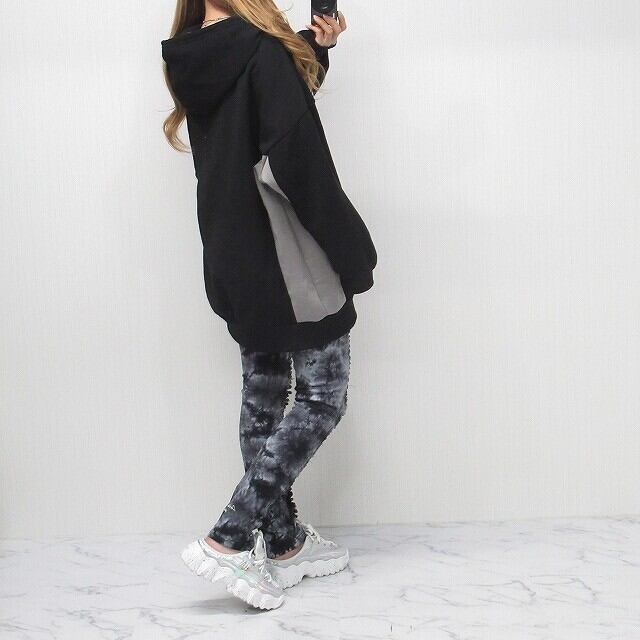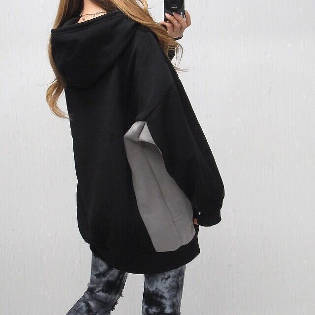 Side配色切替 裏起毛 BIGパーカー ポケット付 ブラック