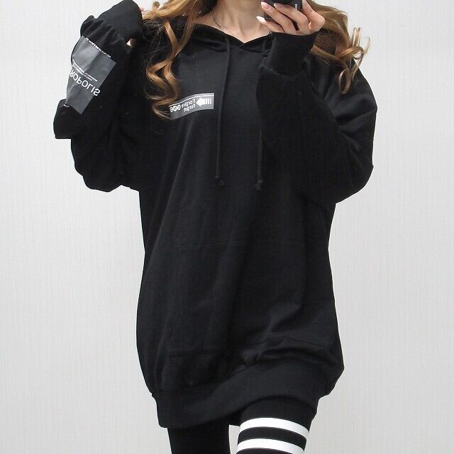 バックスクエアロゴ&袖ロゴ パーカー Frontポケット付 ブラック