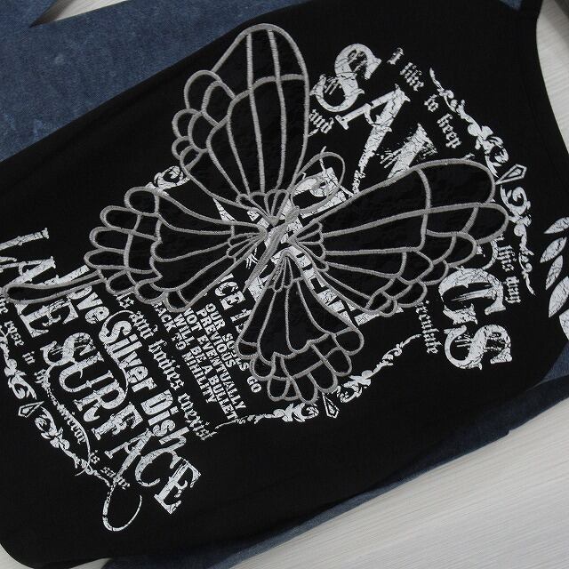 袖デニム 切替 バタフライ刺繍 ロンT ブラック