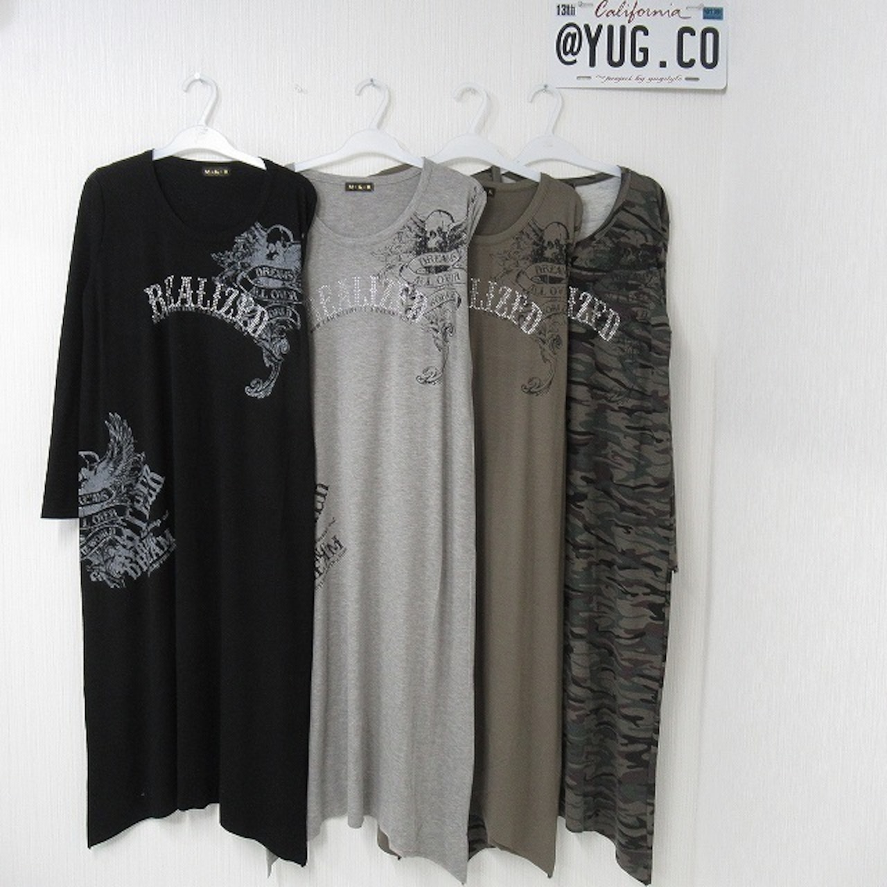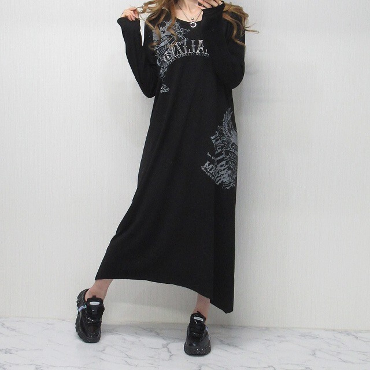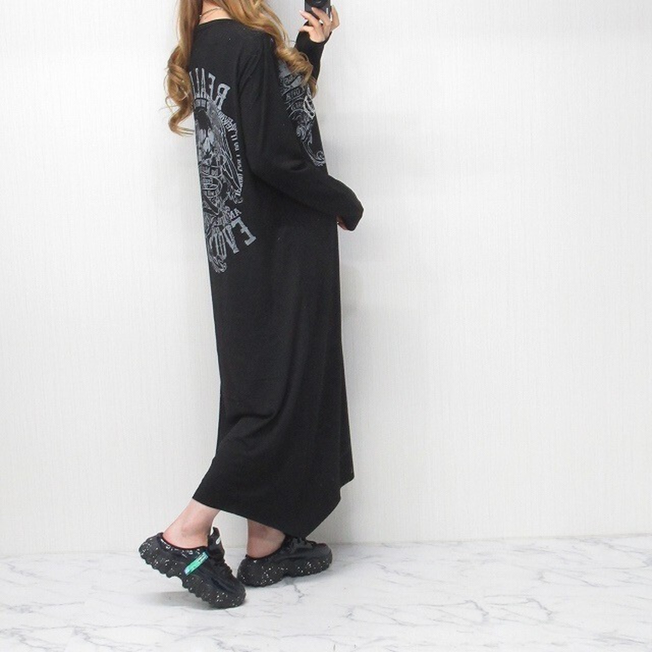 バックプリント スカル 裾アシメ タトゥ マキシワンピ ロングワンピース ブラック