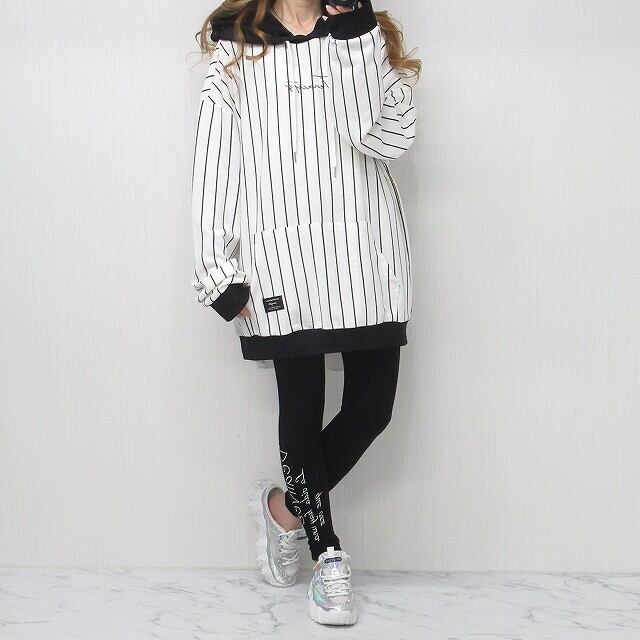 ストライプ柄 エンボス加工 配色切替 BIGシルエット パーカー