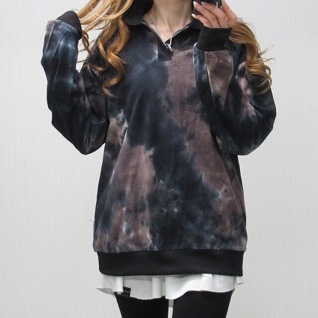 タイダイ柄 ムラ染 Frontハーフ開閉OK ポロシャツ