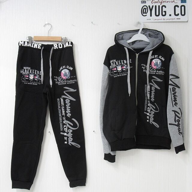 【SET UP】ストリート デコレーション ロゴ Zipパーカー&パンツ 上下セットアップ インポート