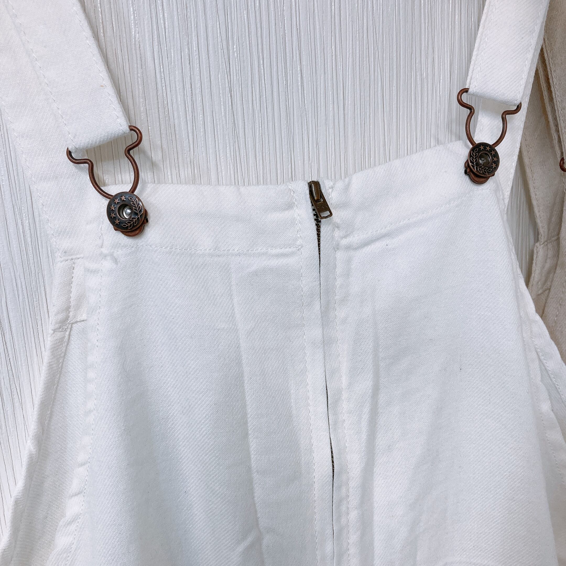 Front ZIP ワイドパンツ ワイドデニム サロペ オーバーオール ホワイト